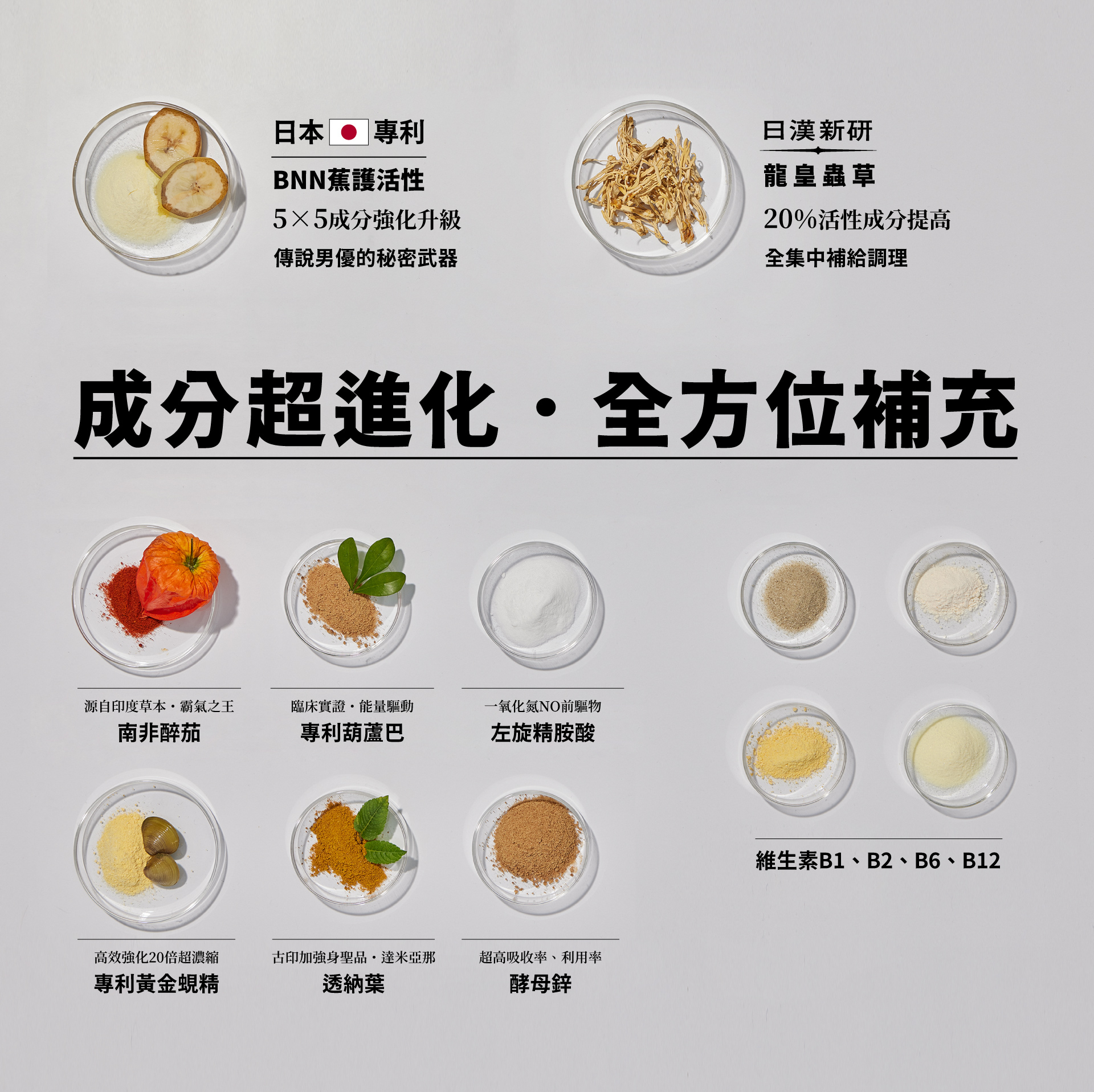 - 12種核心複方|全面補充霸氣元素